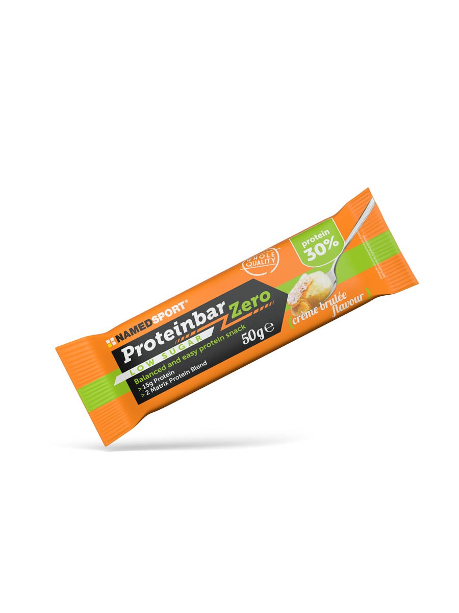 Skład (dla smaku crème bruelèe):białko mleka 32% [kazeinian wapnia (z mleka), izolat białka serwatki (z mleka)], polewa z mlecznej czekolady ze słodzikiem 16% (pasta kakaowa, słodzik: maltitol; masło kakaowe, mleko pełne w proszku, emulgator: lecytyna sojowa; naturalny aromat waniliowy), substancja utrzymująca wilgoć: polidekstroza; gluko-oligosacharydy, substancja utrzymująca wilgoć: glicerol; olej słonecznikowy, substancja słodząca: sorbitol; fruktooligosacharydy, emulgator: lecytyna sojowa; środek żelujący: pektyna; pasta o smaku karmelowym (cukier karmelizowany, woda, kolor: E150a; aromaty), maltodekstryny, środek konserwujący: sorbinian potasu; aromaty, słodzik: sukraloza. Może zawierać jajka.