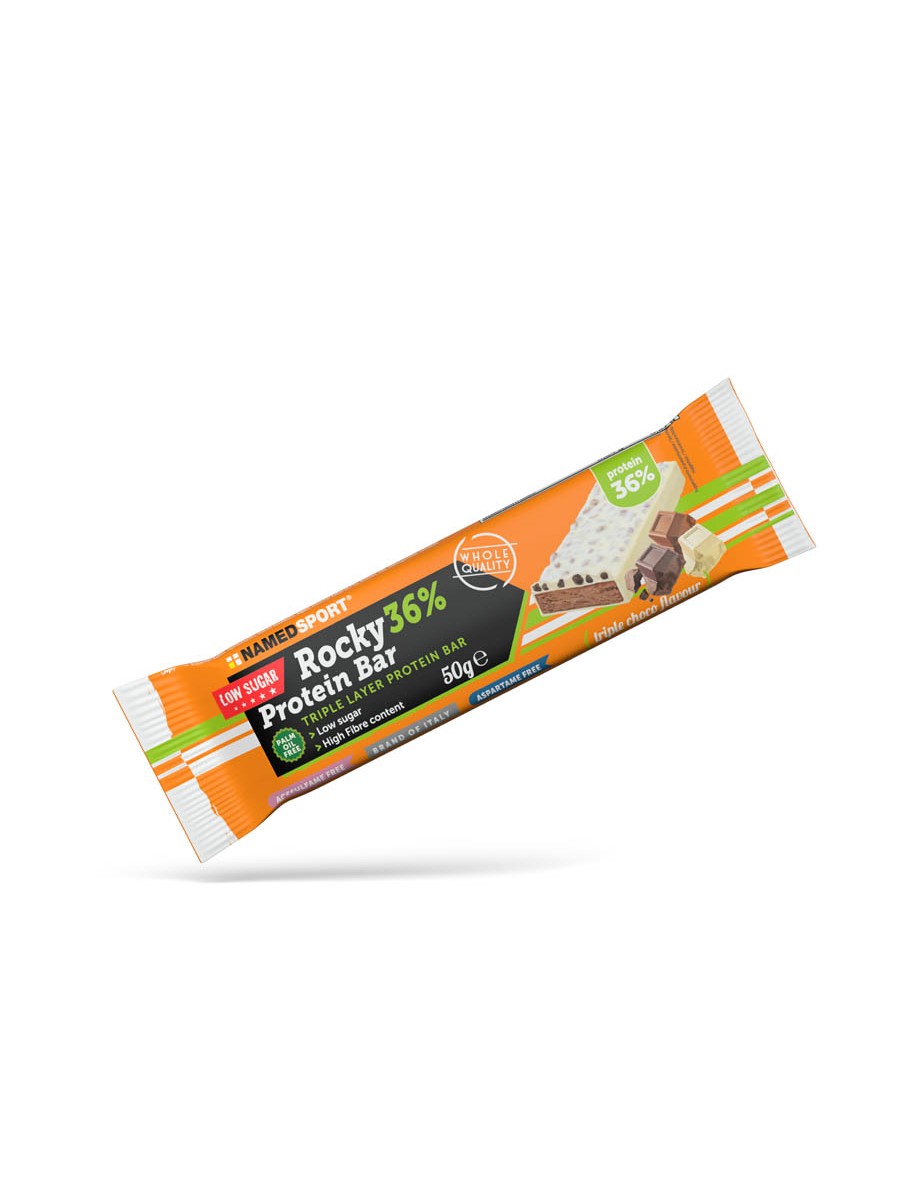 Bogata w białko przekąska o potrójnie czekoladowym smaku, w polewie z białej czekolady Rozpływające się w ustach, kremowe nadzienie kryje przyjemnie chrupiące płatki sojowe. Baton proteinowy Rocky od NAMEDSPORT zawiera aż 36% białka z mleka i tylko 1,8 g cukru w porcji. Baton Rocky jest więc znakomitym urozmaiceniem w diecie sportowców i amatorów, którzy potrzebują odpowiedniej ilości protein w ciągu dnia, jak również zastąpi słodycze osobom odchudzającym się.
