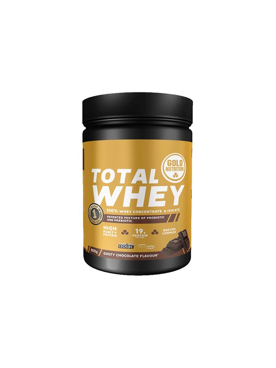 Total Whey marki Goldnutrition to formuła bogata w białko o wysokiej zawartości biologicznej, a dokładniej w koncentrat i izolat serwatki (białko serwatkowe). Bardzo dobrze rozpuszczalne, szybko wchłanialne i przyswajalne, niskotłuszczowe, o obniżonej zawartości węglowodanów.