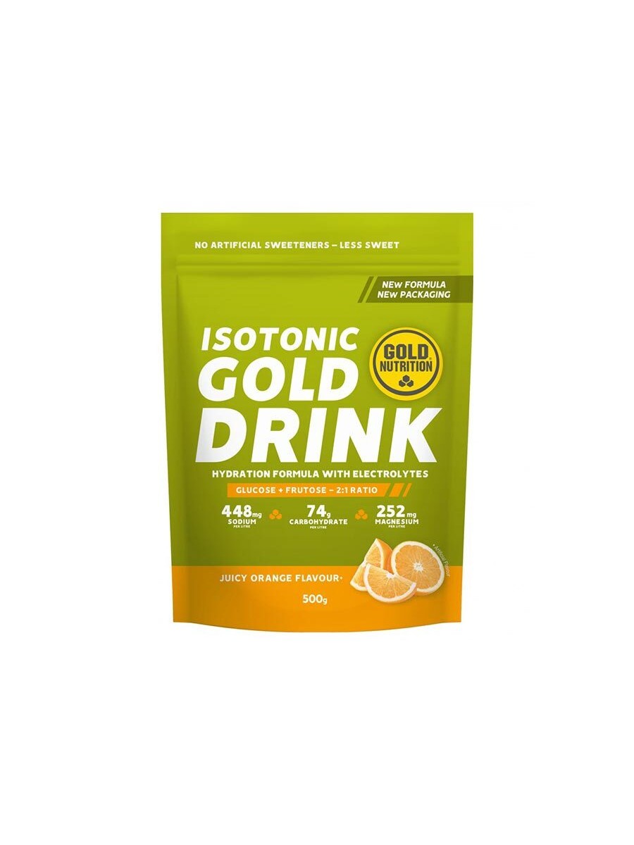 Gold Drink to napój izotoniczny zawierający kombinację węglowodanów o wysokim indeksie glikemicznym - dekstrozy i maltodekstrozy - oraz fruktozy. Składniki te optymalizują poziom glikemii i zapobiegają tym samym hipoglikemii.