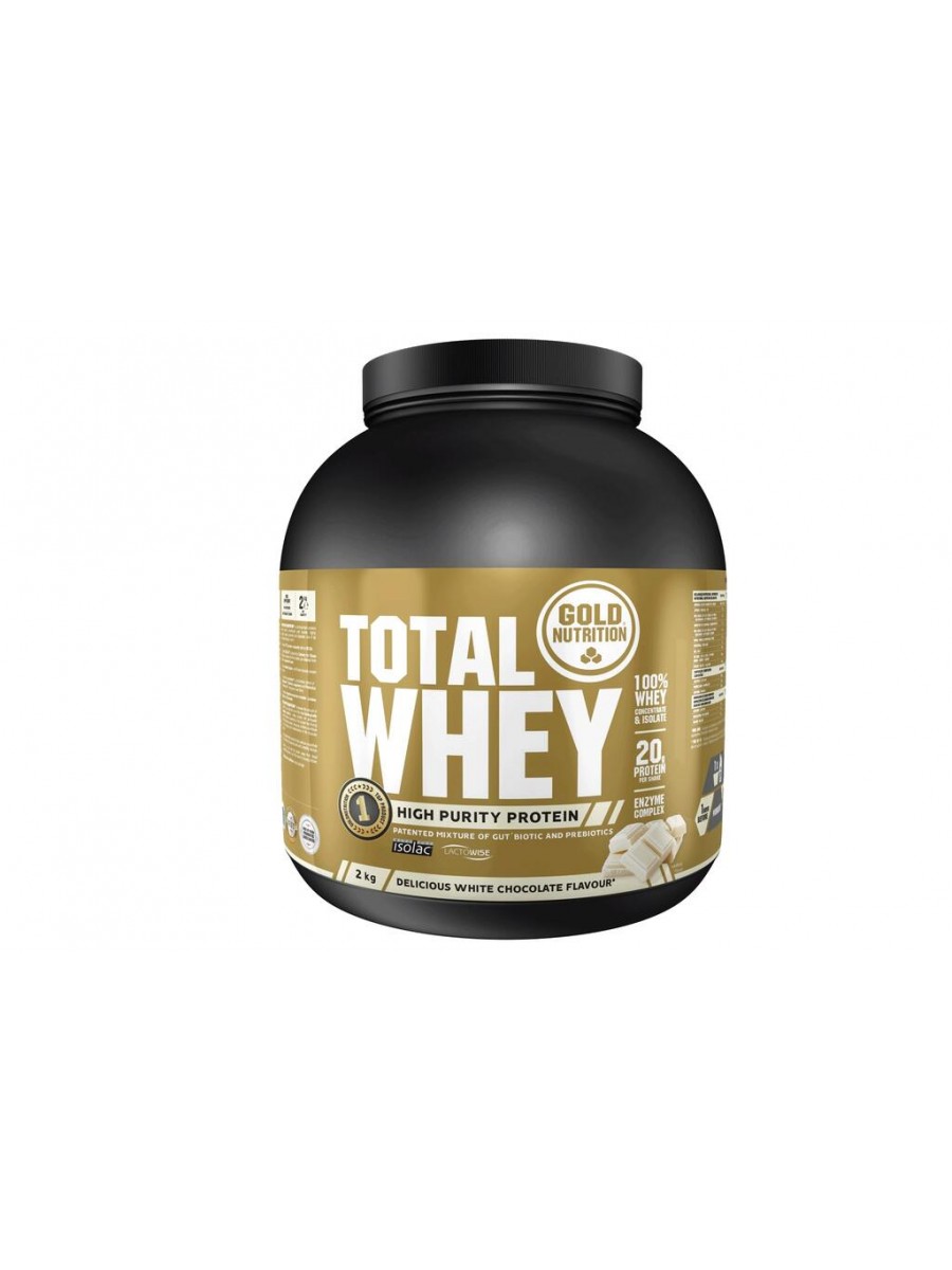 Total Whey marki Goldnutrition to odżywka bogata w białko o wysokiej zawartości biologicznej - w koncentrat oraz izolat serwatki (białko serwatkowe). Bardzo dobrze rozpuszcza się w wodzie, szybko się wchłania i jest dobrze przyswajalne. Niskotłuszczowe, o niskiej zawartości węglowodanów.