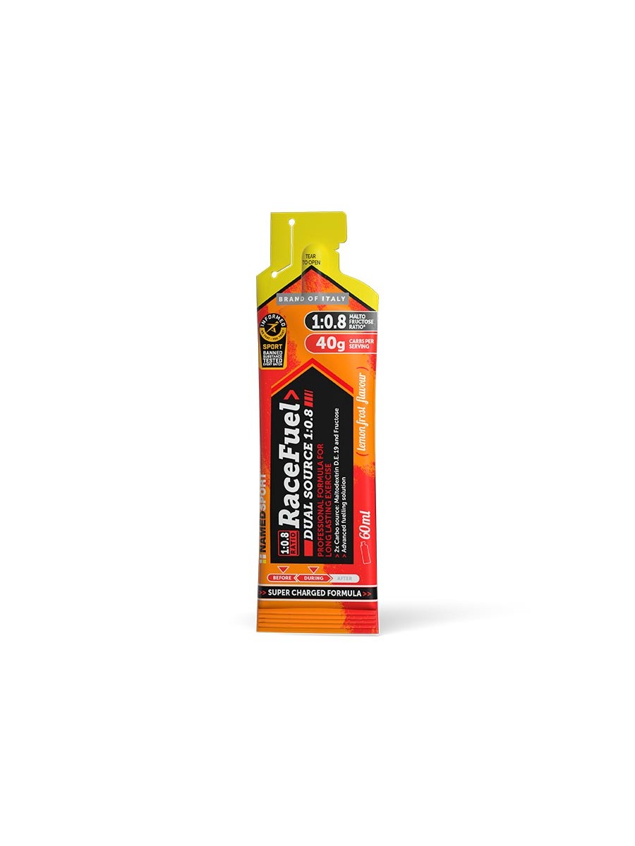 Żel energetyczny z serii RaceFuel> Dual Source 1:0,8 zaprojektowany w celu wsparcia sportowców podczas długotrwałych i intensywnych wysiłków wytrzymałościowych.
