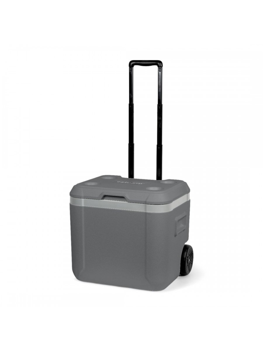 Praktyczna lodówka o pojemności 52 litrów, na kółkach, wyposażona w poręczną teleskopową rączkę.