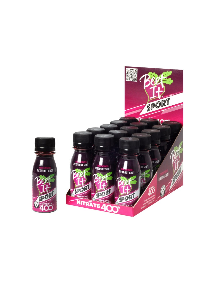 Beet It Sport Nitrate 400 to wysoko skoncentrowany shot z soku buraczanego, dostarczający 400 mg azotanów w każdej porcji 70 ml. Zawarte w burakach azotany wykazują udowodnione działanie wspierające wydolność organizmu, zwiększając jego efektywność podczas intensywnych ćwiczeń. Dzięki naturalnym właściwościom buraka, ten shot jest świetnym wyborem dla sportowców poszukujących sposobu na poprawę osiągów w sportach wytrzymałościowych i siłowych.