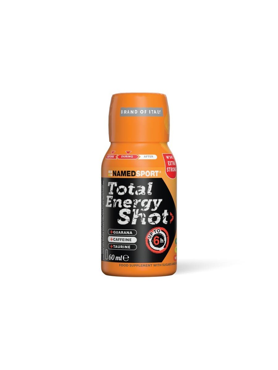 Total Energy Shot marki NAMEDSPORT to skoncentrowany suplement energetyczny w formie poręcznego shota, zawierający kofeinę (180 mg), taurynę (1000 mg), guaranę oraz witaminy C i B12. Redukuje zmęczenie i zwiększa wydolność fizyczną i psychiczną. Idealny suplement przedtreningowy dla sportowców wyczynowych i amatorów.