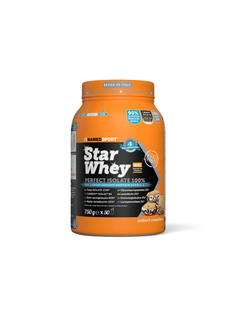Star Whey Perfect Isolate o smaku ciastka to odżywka premium oparta na ultra czystym izolacie białka serwatkowego (CARBERY® Isolac 90). Zawiera opatentowaną mieszankę NAMED 4 PROTEIN MATRIX® z enzymami, kozieradką i siarą bydlęcą dla maksymalnej biodostępności. Idealna dla sportowców ceniących niską zawartość cukru i najwyższą jakość.